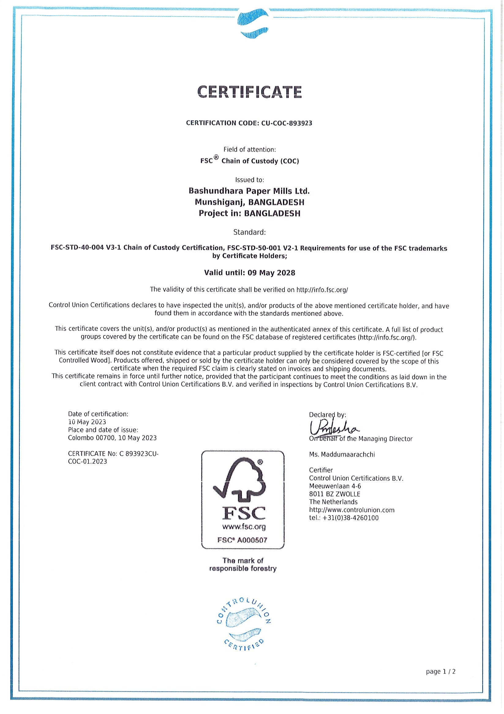 CU-COC-893923 Certifications January 28, 2025 accreditation FSC CU-COC-893923 Certificate of BPML 2023-2028