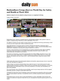 Sustainability News Featured Regular Bangladesh Brand Forum Magazine (Jan’ 24 issue) features on Bashundhara Paper Sector's Sustainability Excellence Bashundhara Group observes World Day for Safety and Health at Work 2024 - Daily Sun বিশ্ব কর্মক্ষেত্রে নিরাপত্তা ও স্বাস্থ্য দিবস ২০২৪’ পালন করল বসুন্ধরা গ্রুপ- কালের কণ্ঠ সাসটেইনেবিলিটি রিপোর্ট প্রকাশ করল বসুন্ধরা পেপার সেক্টর- কালের কণ্ঠ Bashundhara Paper sector sets new standards in sustainability with inaugural report- The Business Standard Bashundhara Paper sector unveils its first sustainability report- The Daily Sun